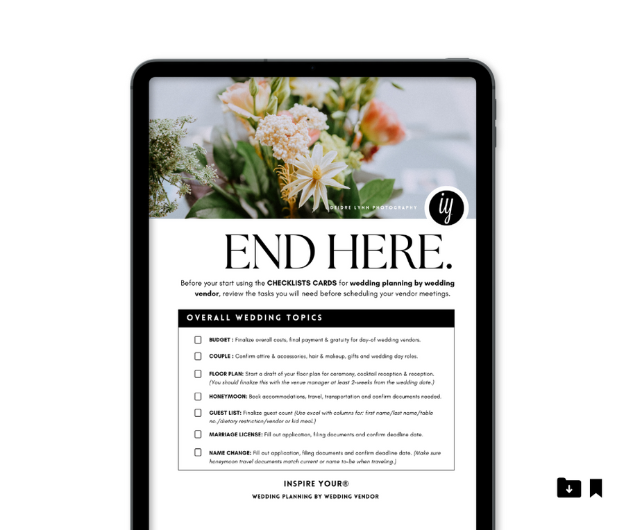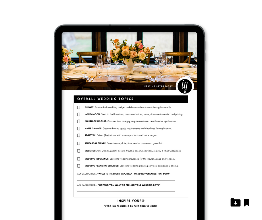 Printed wedding guide with the ability of digital download for an editable PDF form* for your tablet and computer.โ